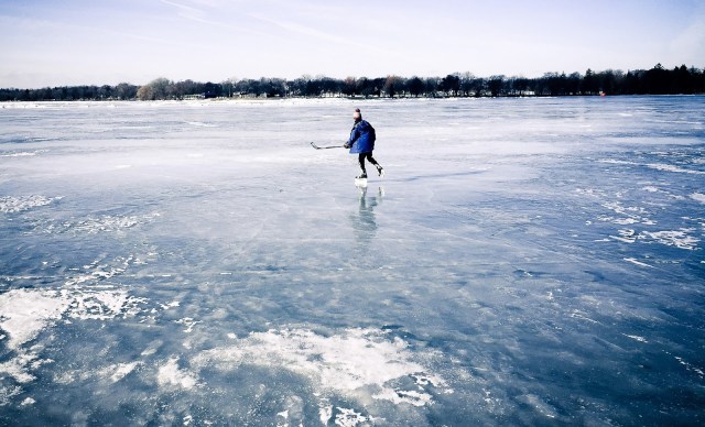So fun living near this beautiful place. This was the other day when the snow had melted and the froze again. Most of the lake was smooth, a rare and super-fun moment to skate around. Art and I explored and played on the ice rinks left over from the pond hockey tournament a week prior (see aerial photos below I napped off twitter).