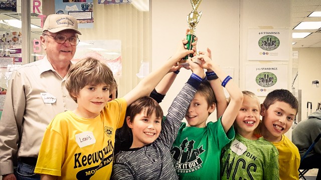 It’s a pretty big fun deal. They’re all 4th graders and won first place in the category 4th-6th graders in the Minneapolis city-wide tournament. Here’s Lewis about to mercilessly destroy this unsuspecting kid:
