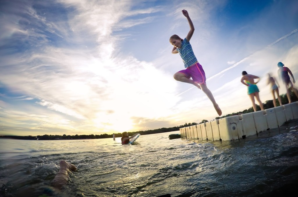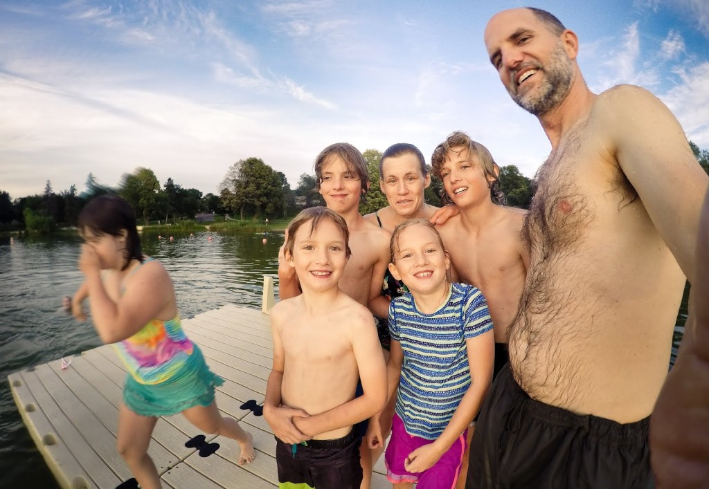 Was reading the parenting handbook the other day and apparently if you live within a few blocks of a warm lake and it’s July you must take your children swimming every night. Which is what we’ve been doing in Lake Nokomis this week. The kids are all brave and capable enough to swim out to the floating raft, a nightly adventure and cool down. Fun!
