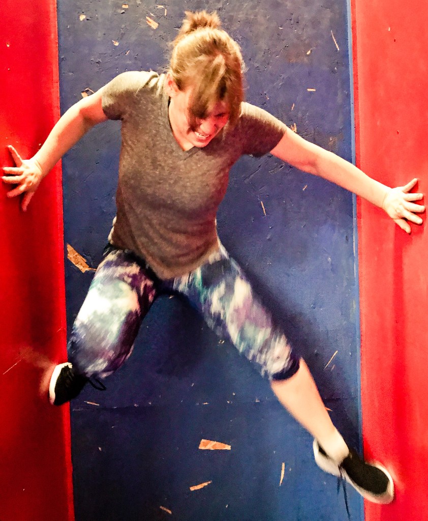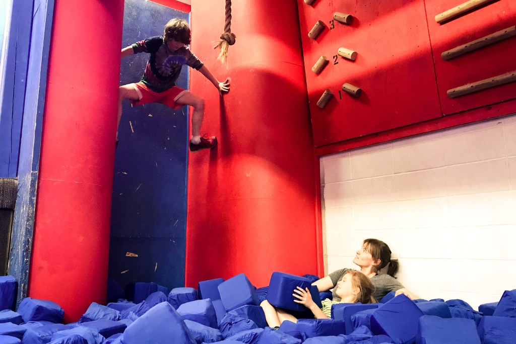About a year ago we went to one of those ‘Ninja Warrior’ gyms, I think for art’s birthday. The IDEA was fun, but the actualy stuff they had you do was super hard. Like, mostly impossible. Still had a bang up time. Jessica, as you can see, was especially competent at the wall climb deal. Lewis, too!