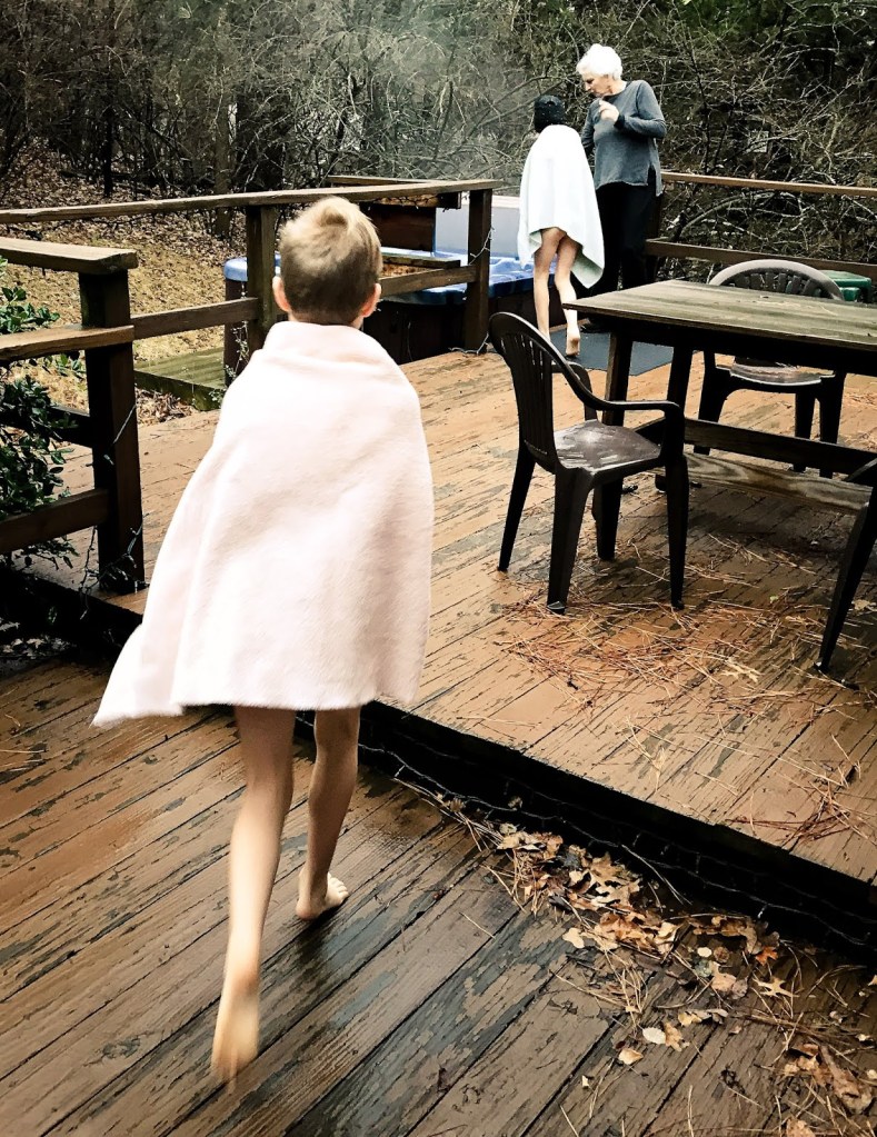 She always got the kids a book, carefully chosen for their current interests. I channeled her by ordering Captain Raptor and the Space Pirates for Art, a sequel to a library book he had loved. And I channeled her as I grumbled about the layers of the cake not being very high, or how it came apart here or there. She would have been very disappointed that we didn’t have real candles (Ben cut strips of cardboard and lit them. She would have smirked and looked over the top of her glasses at him but been secretly delighted by the ingenuity).