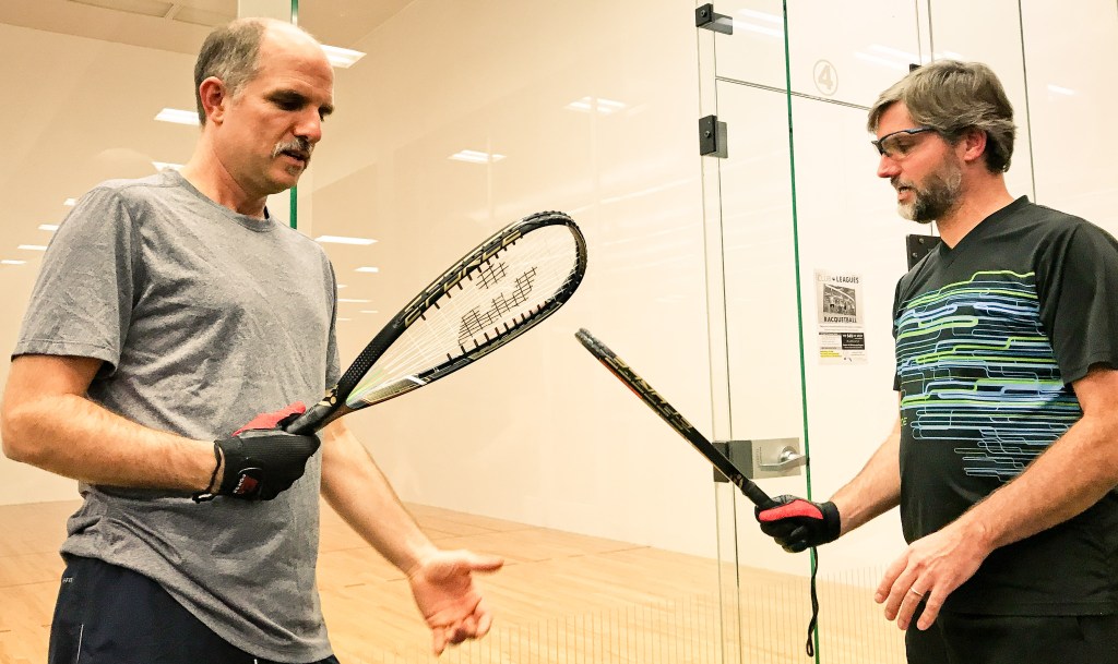 The Garvin brothers playing raquetball.