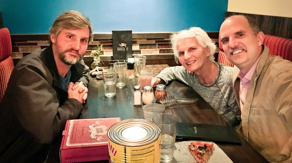 A very happy Nanna having dinner with her two children.