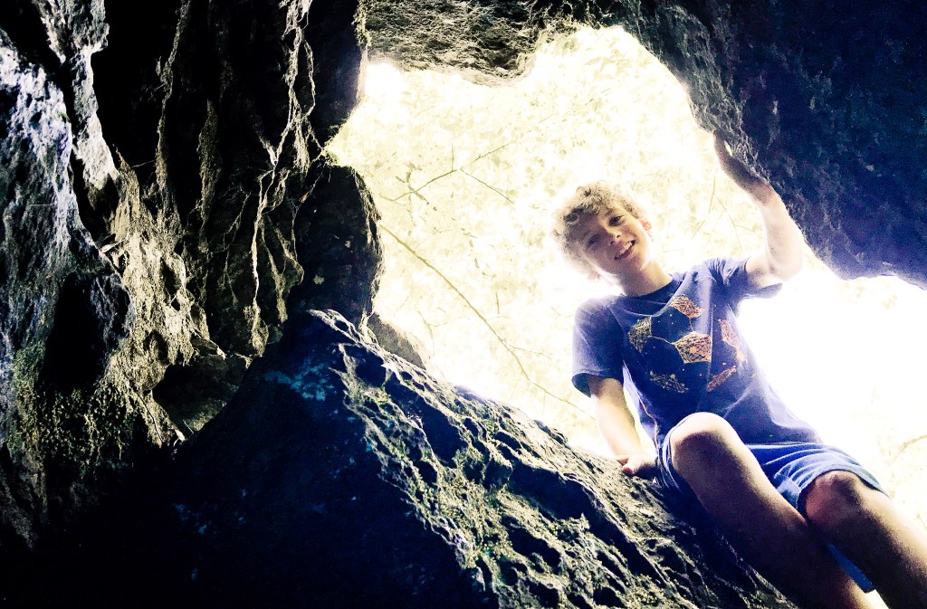 Lewis and a very scary looking Art in Marvel Cave at Silver Dollar City.